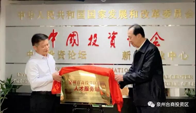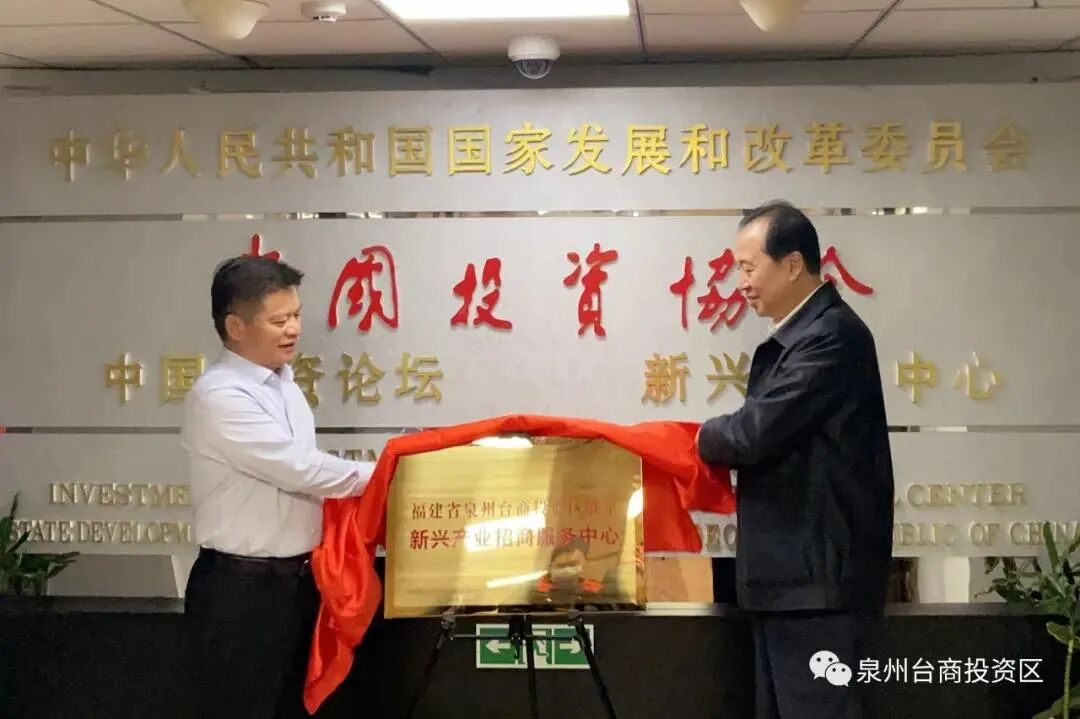 泉州市政协副主席、泉州台商投资区党工委副书记、管委会主任刘志平和中国投资协会新兴产业中心常务副主任王涛共同为泉州台商投资区驻京新兴产业招商服务中心、人才服务站揭牌。