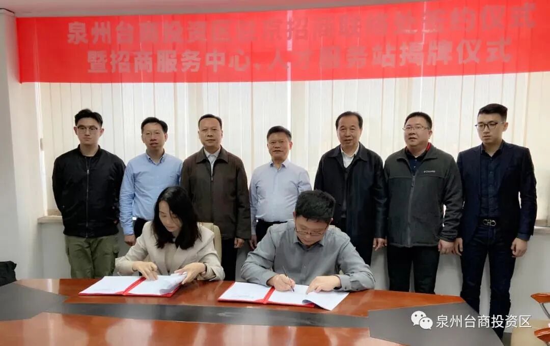 10月22日下午,泉州台商投资区驻京招商联络处签约仪式暨招商服务中心、人才服务站揭牌仪式于北京中国投资协会新兴产业中心举行。市政协副主席、区党工委副书记、 管委会主任刘志平,中国投资协会新兴产业中心常务副主任王涛等领导出席活动。